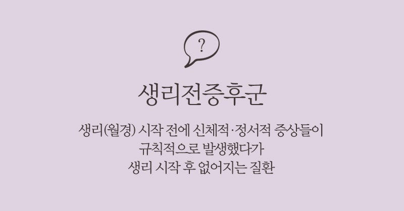 한 달에 한 번 여성은 80% 이상 PMS(월경전증후군)를 경험합니다. 여성은 일생 동안 약 480회의 월경을 하는 것으로 알려져 있으며, 이러한 증상들로 인해 신체적/심리적으로 고통받고 있습니다. 또한 20% 정도의 여성은 일상생활에 지장을 줄 정도로 많은 피해와 고통을 받고 있습니다.
